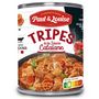 Tripes* et pieds* désossés de bœuf 57,5%, sauce (bouillon, concentré de tomates 3,8%, vin blanc (contient des sulfites), sel, gras de bœuf 1%, épices et aromates dont thym 0.003%, arômes naturels, piment 0,2%, poudre de carottes, sucre, épaississant : gomme de guar (E412)), carottes 0,8%, cornichons 0,6%. * Origine France