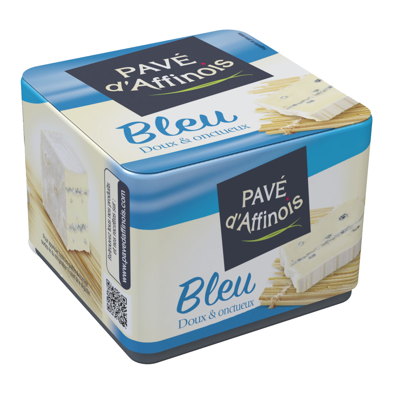Fromage à pâte molle persillée Boîte cartonnée contenant un Pavé Bleu filmé, au lait de vache pasteurisé, à la saveur douce