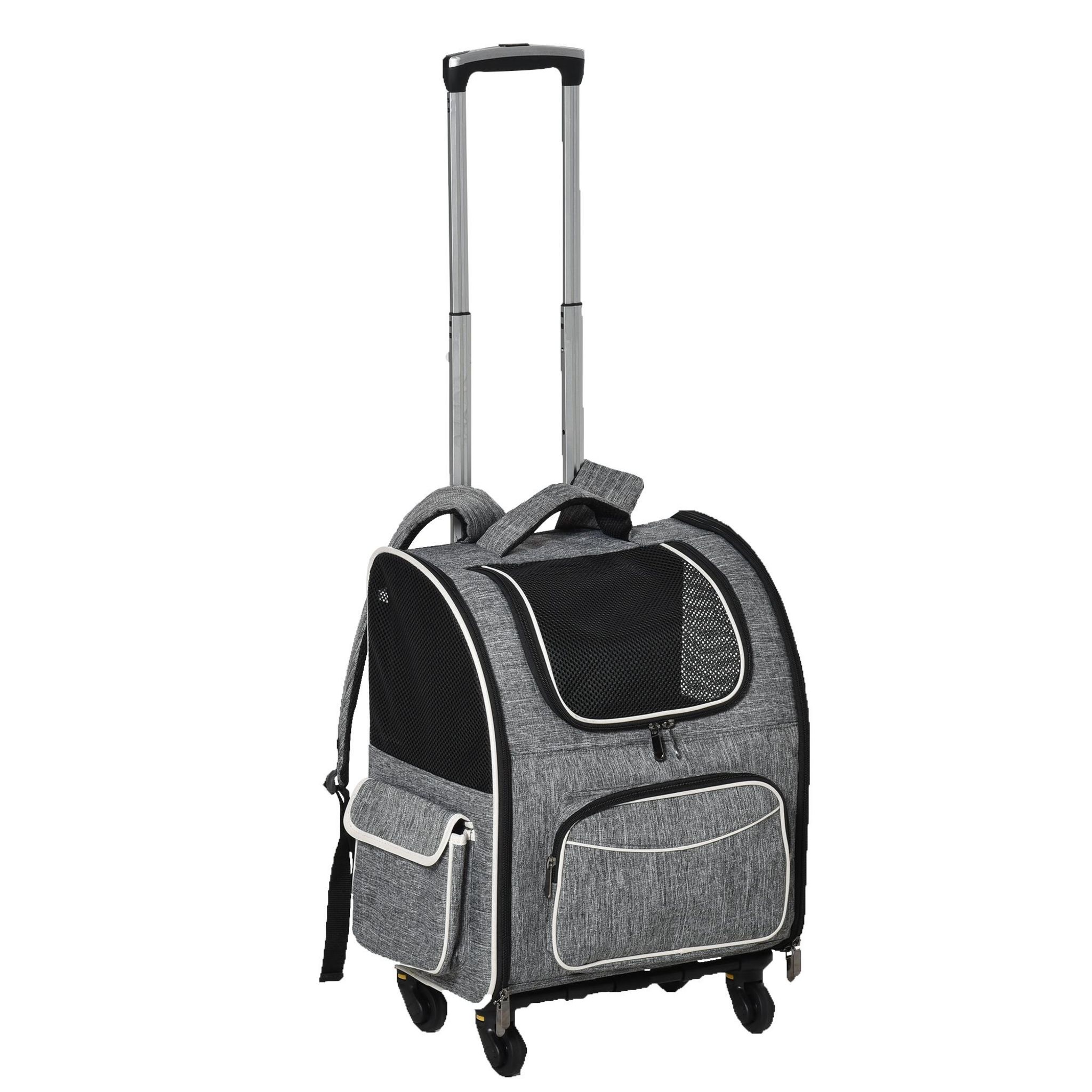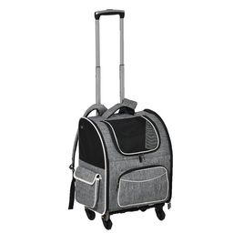 2 en 1 trolley chariot sac à dos sac de transport à roulettes pour chien chat gris