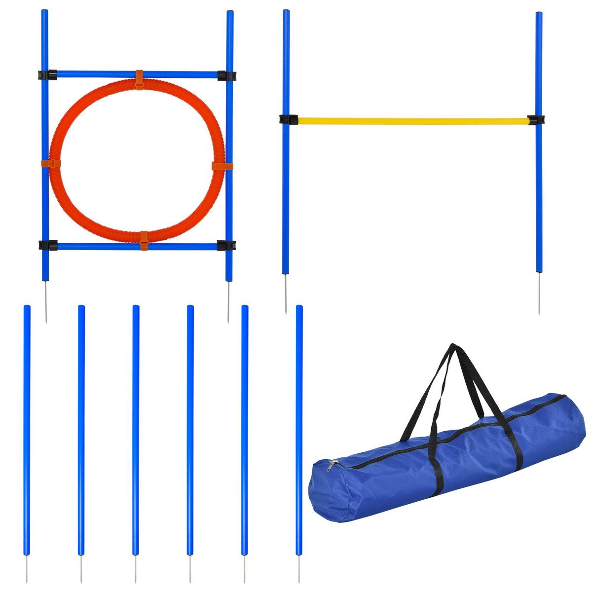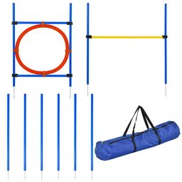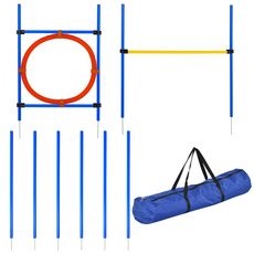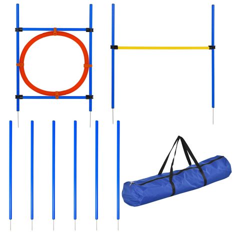 Agility sport pour chiens équipement complet : 6 poteaux slalom, obstacle, anneau + sac de transport bleu jaune rouge