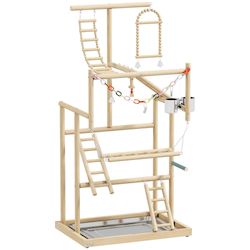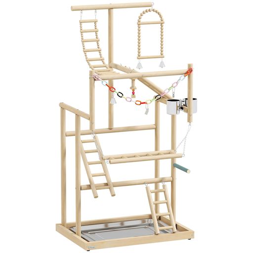Découvrez l'aire de jeux pour oiseaux PawHut, un espace ludique et sécurisé pour oiseaux. Fabriqué en bois massif avec pieds en caoutchouc, il comprend quatre niveaux avec échelles, balançoires et mangeoires. Facile à nettoyer grâce à son plateau en acier inoxydable amovible, l'assemblage est rapide
