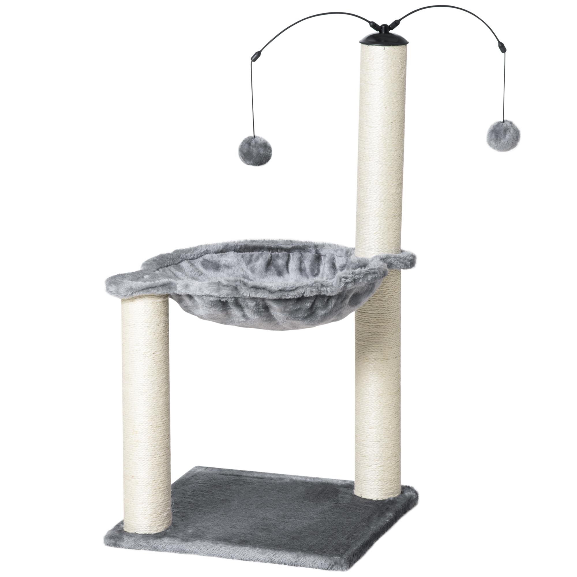 Ce magnifique arbre à chat design coloris gris doté de 3 griffoirs, d'un hamac et d'un jeu de 2 boules suspendues permettra à votre animal de jouer, se reposer, et s'épanouir pleinement.