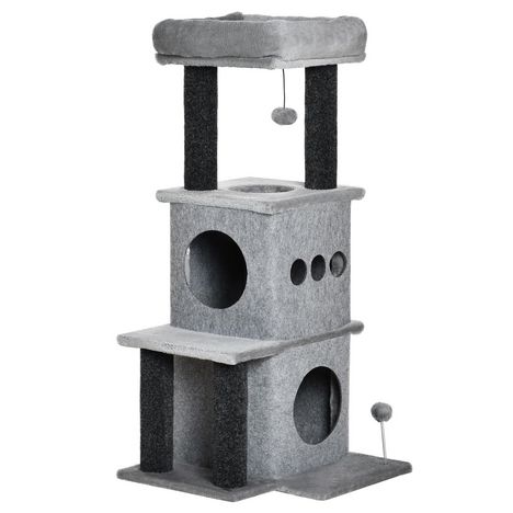Votre boule de poils pourra s'amuser tous les jours avec cet arbre à chat centre d'activités multi-équipé. Multi-niveaux, doté de nombreux équipements (2 grandes niches avec housses amovibles, jeu de boule suspendue et boule à ressort) et plusieurs plateformes, votre chat pourra se dépenser, se reposer ou faire ses griffes sans avoir à s'attaquer à vos meubles.