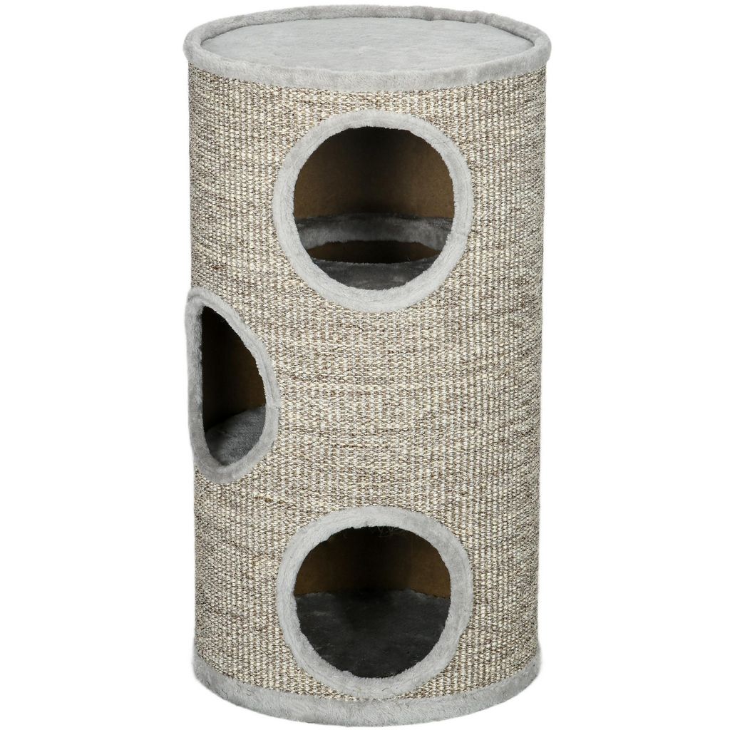 Arbre à chat cylindrique - tour à griffer pour chat - tonneau griffoir - 3 niveaux + plateforme - sisal peluche gris clair