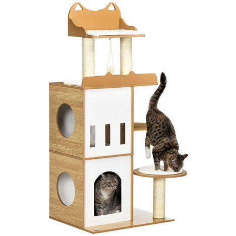 Ce magnifique arbre à chat design contemporain multi-équipé doté de griffoirs, de 2 niches, de 4 plateformes et d'un jeu de boule suspendue permettra à votre chaton ou chat de se développer et de s'épanouir pleinement ! Caractéristiques : - Arbre à chat design contemporain cosy chic très élégant-