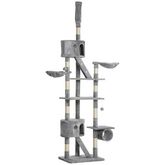 Découvrez l'arbre à chat PawHut, un paradis du sol au plafond pour plusieurs chats. Il offre plateformes, hamacs, et niches douillettes. Le poteau à griffer maintient leurs griffes affûtées. Avec un revêtement en peluche pour un confort optimal, il est ajustable de 240 à 260 cm. Un refuge idéal pour