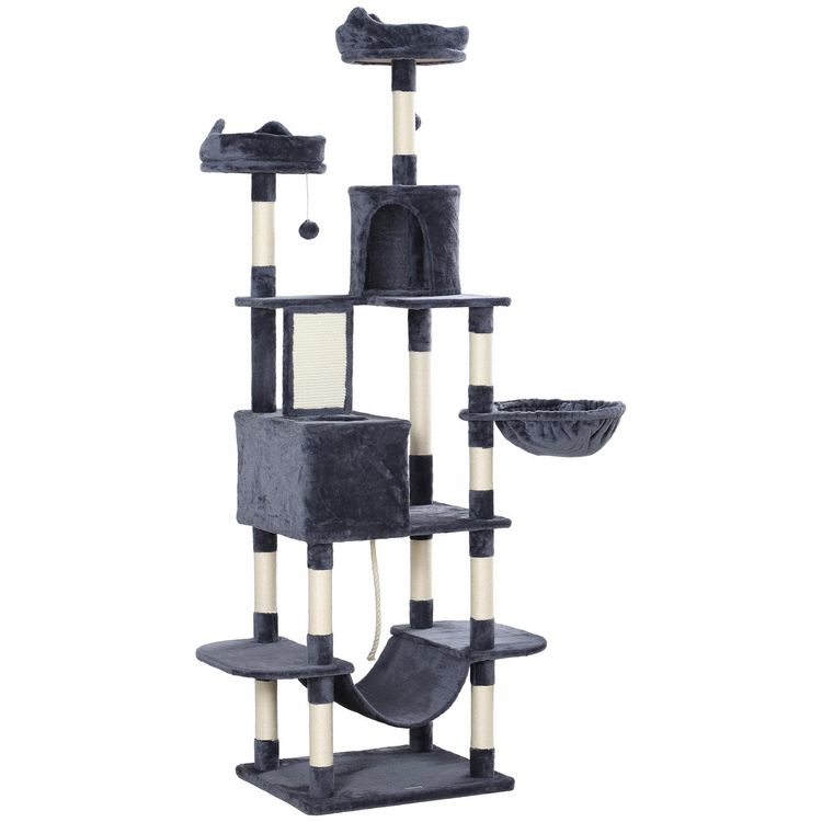 Créez un paradis félin avec l'arbre à chat PawHut, équipé de lits confortables, niches spacieux et deux hamacs. Idéal pour le divertissement avec un poteau à griffer et balles jouets. Sa base stable et surfaces en sisal protègent vos meubles. Parfait pour 1-3 chats, il s'intègre à votre déco.Caracté