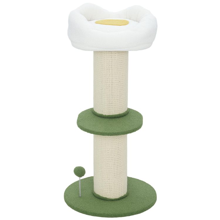Arbre à chat griffoir design fleurs H.92 cm plateforme et panier d'observation boule à ressort