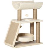 Arbre à chat griffoirs grattoir jeu boules suspendues plateformes ronde, rectangulaire et demi-cylindrique peluche jute naturelle beige