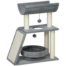 Ce joli modèle d'arbre à chat est équipé de 4 griffoirs, d'un grattoir rampe, d'un jeu de boules suspendues et de 3 plateformes variées (une ronde, une rectangulaire et une demi-cylindrique) qui ne manqueront pas d' éveiller et d' amuser votre chat !
