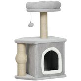 Arbre à chat H.66 cm poteaux à griffer jute lit maison chat plateforme balle de jeu gris