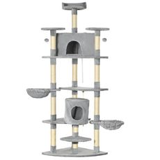 Instrument de jeu idéal pour les chats, cet arbre à chat multi-équipement doté de nombreuses plateformes, griffoirs, de 2 niches, 2 hamacs, 2 balles de jeu suspendues et une corde permettra à votre animal de jouer, se reposer et de s'épanouir pleinement.