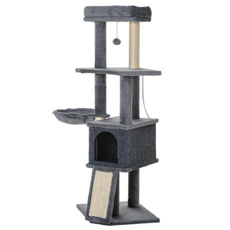 Arbre à chat multi-équipement griffoirs grattoirs plateforme niche hamac jeu boule suspendue gris