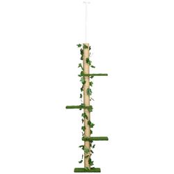 Arbre à chat poteau à griffer design hauteur réglable dim. 37L x 21l x 202- 242H cm 4 niveaux beige vert