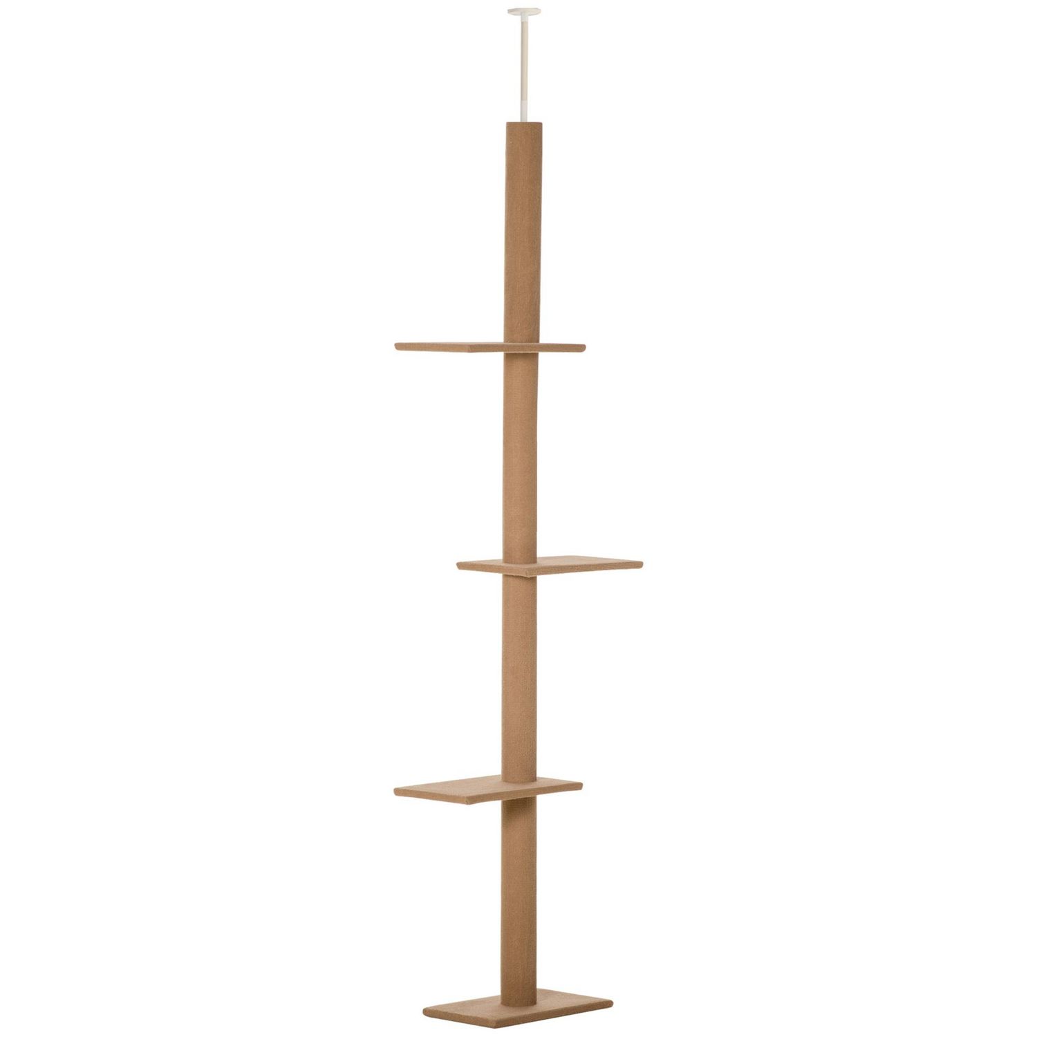 Arbre à chat poteau à griffer hauteur réglable dim. 43L x 27I x 228-260H cm 4 niveaux d'activités marron