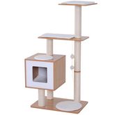 Arbre à chats design contemporain griffoirs grattoirs sisal naturel centre d'activités niche plate-formes jeu boules suspendues 71L x 49l x 120H cm MDF hêtre clair