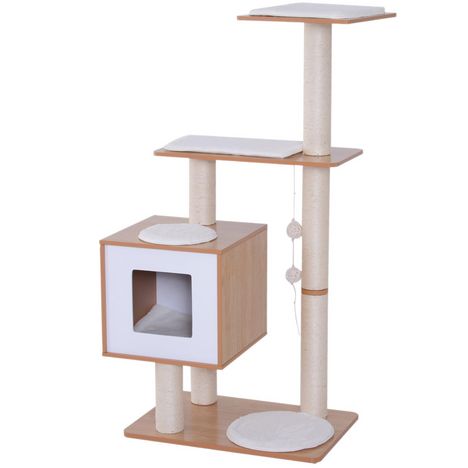 - Arbre à chat centre d'activités variées : griffoirs, grattoirs, niche, plate-formes et jeu de boules suspendues permettant à votre chat de jouer, faire ses griffes et de s'étirer