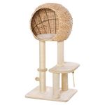 Ce superbe arbre à chats style cosy chic mélant les revêtements en massette imitation rotin et peluche courte apportera une touche d'originalité et d'élégance supplémentaire à votre intérieur. Doté de griffoirs, d'une grande niche, de 2 plateformes, d'un jeu de boule suspendue et d'une corde d'escal