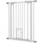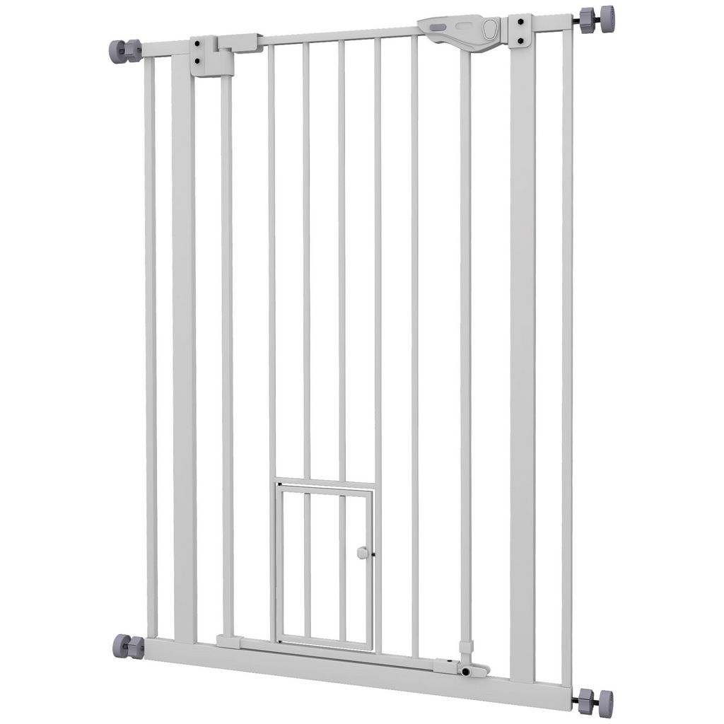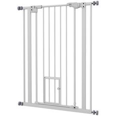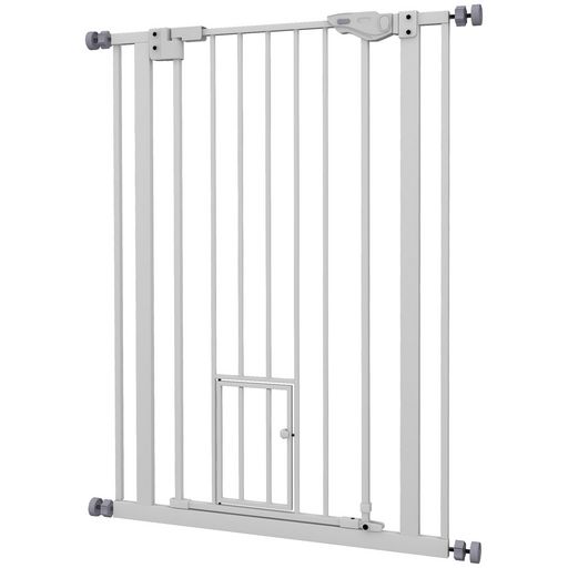 Barrière de sécurité animaux - longueur réglable dim. 74-80 cm - porte double verrouillage, ouverture double sens, petite porte -sans perçage - acier plastique blanc