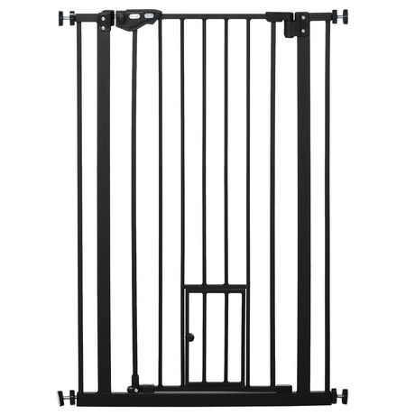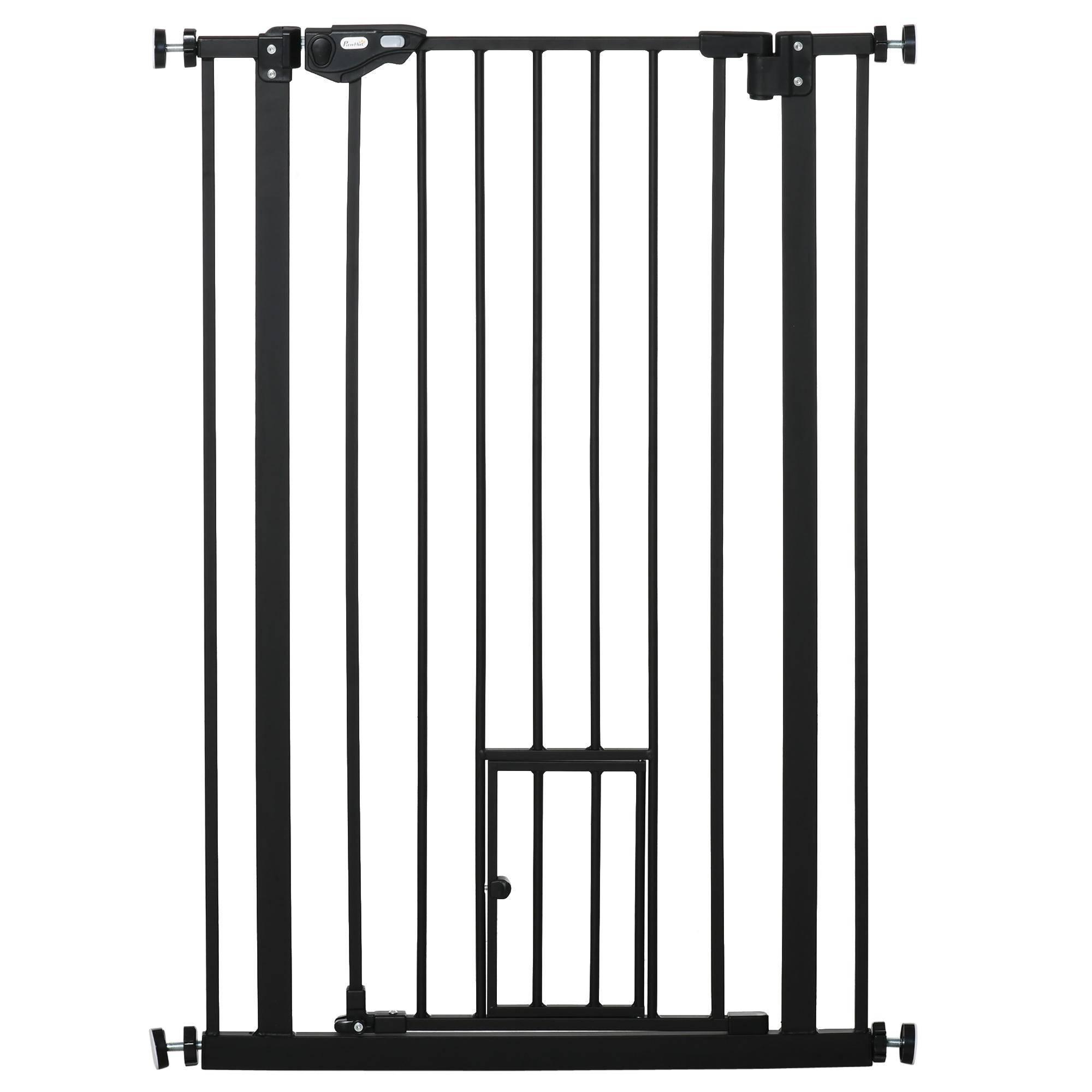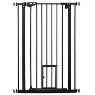 Barrière de sécurité animaux - longueur réglable dim. 74-80 cm - porte double verrouillage, ouverture double sens, petite porte -sans perçage - acier plastique noir