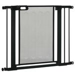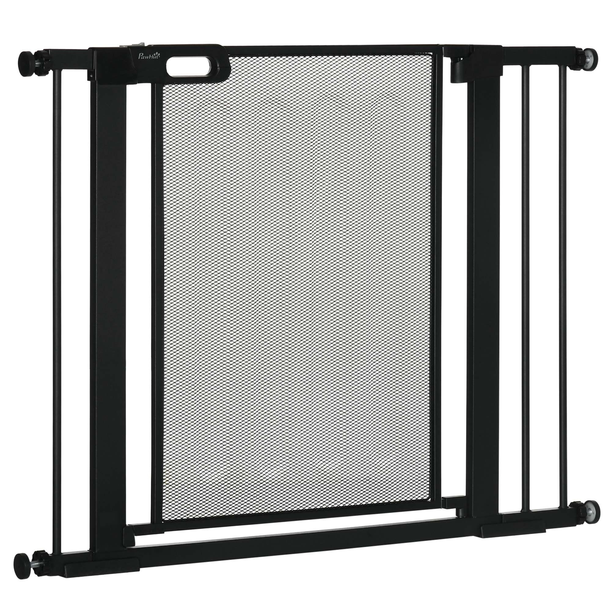 Barrière de sécurité animaux - longueur réglable dim. 75-103 cm - porte double verrouillage, ouverture double sens -sans perçage - acier ABS noir