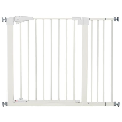 Barrière de sécurité animaux réglable 76-103L cm - porte 2 verrouillages, ouverture 2 sens - acier ABS blanc