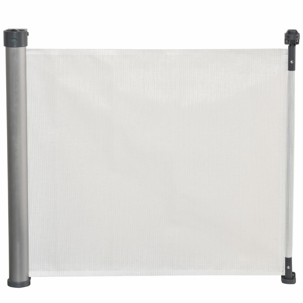 Barrière de sécurité barrière animaux rétractable automatique dim. 1,4L x 0,88H m aluminium maille PVC blanc