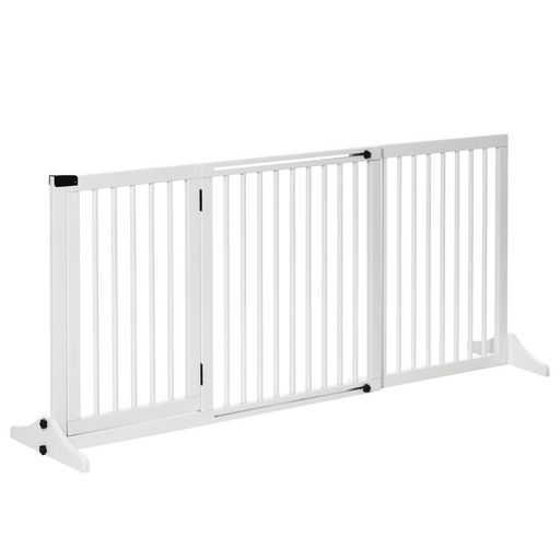 Barrière de sécurité chien barrière autoportante longueur réglable porte verrouillable intégrée dim. 113-166L x 36l x 71H cm sapin blanc