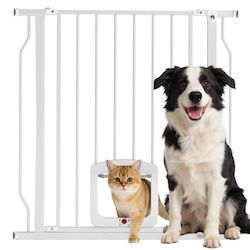La barrière d'escaliers et de portes pour chien PawHut avec ouverture à une main et porte pour chat assure la gestion aisée de vos animaux dans un foyer animé. Elle offre liberté et sécurité, optimisant la tranquillité et la fluidité de mouvement pour tous, y compris vous.