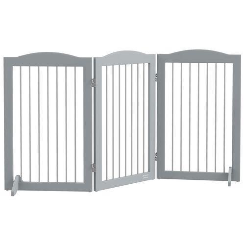 Besoin de restreindre l'accès de vos animaux ? La barrière de sécurité pour chien PawHut, avec trois panneaux et des charnières robustes, se configure facilement. Structure en MDF stable, montage au sol avec pieds larges pour plus de stabilité. Installation rapide, cette barrière en bois est une solution efficace et sécurisée pour limiter les zones accessibles aux animaux.