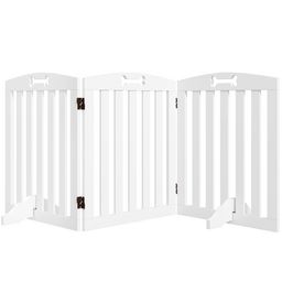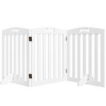 Explorez la barrière de sécurité pour animaux PawHut, un accessoire pliable en trois panneaux, idéal pour couloirs, portes et escaliers. Avec ses pics antidérapants et pieds robustes, elle assure la sécurité de vos animaux tout en ajoutant une touche de style avec son motif d'os creux. Parfait pour