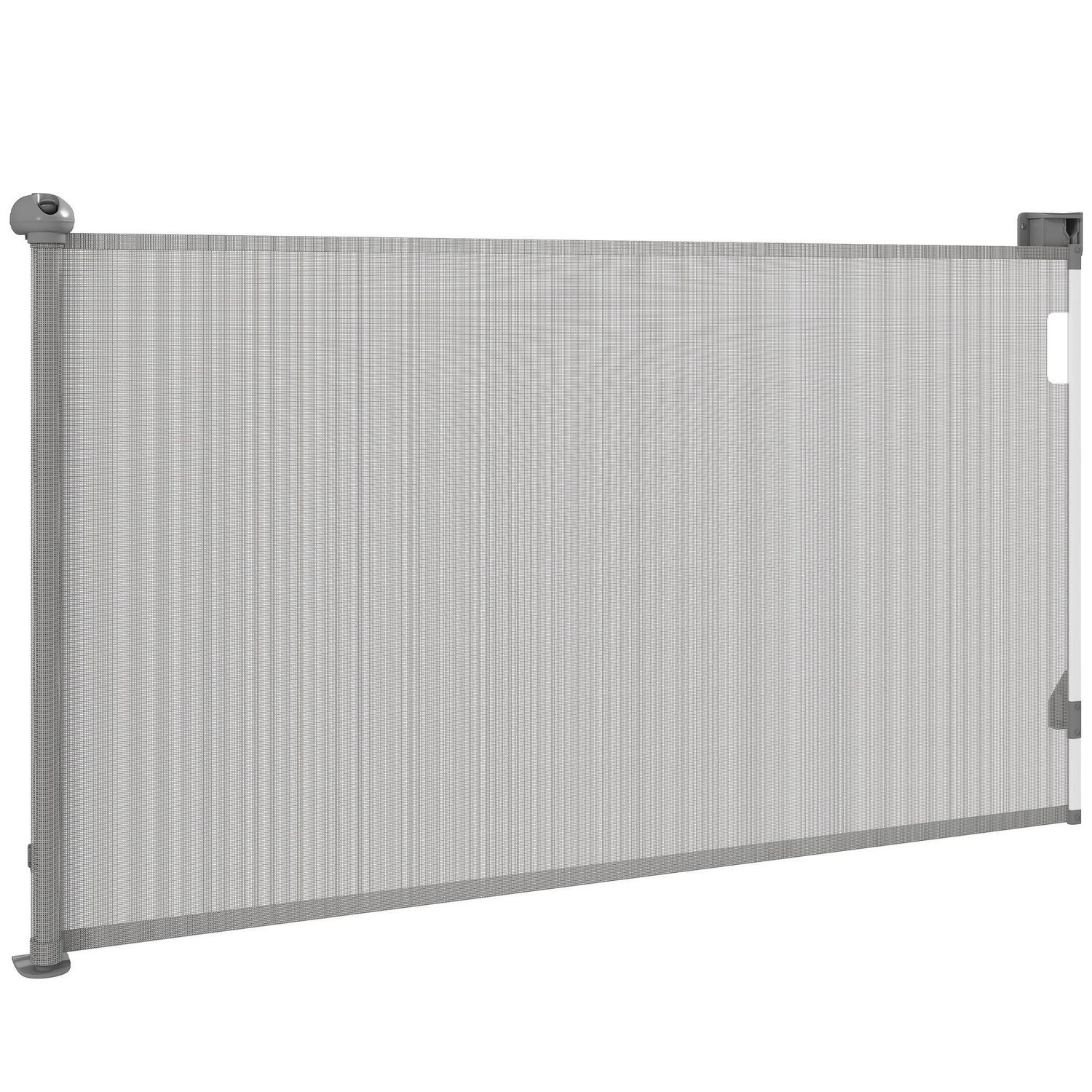 Barrière de sécurité chien rétractable 0-144 cm H.87 cm verrouillage auto alu PVC gris