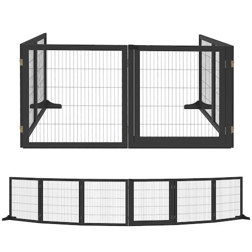 Barrière de sécurité parc enclos chien modulable pliable porte verrouillable intégrée 5 panneaux grillage acier noir bois de pin noir