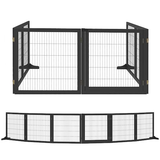 Cette barrière de sécurité parc enclos chien modulable pliable 2 en 1 vous permettra d'offrir un maximum de sécurité pour votre animal. Cette barrière de protection en bois de pin avec grillage acier est auto-portante grâce à son double piètement. Cet équipement est polyvalent et peut également être utilisé en tant que parc enclos avec porte d'accès verrouillable.