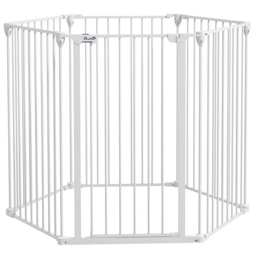Cette barrière de sécurité parc enclos chien modulable pliable 2 en 1 vous permettra d'offrir un maximum de sécurité pour votre animal. Cette barrière de protection en acier et PP est auto-portante ou à fixer au mur suivant vos préférences. Cet équipement est polyvalent et peut également être utilisé en tant que parc enclos avec porte d'accès verrouillable.