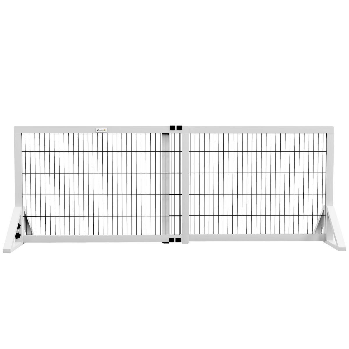 Protégez votre chien avec la barrière PawHut, ajustable et équipée de pieds amovibles et de tapis anti-glisse. Sécurisée et élégante, elle combine un cadre en pin et une structure en maille d'acier, idéale pour portes et passages.