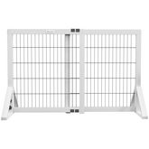 Barrière de sécurité pour chien, barrière de protection à 2 panneaux largeur réglable 63-106L x 44l x 67H cm, barrière pour escalier, porte, couloirs, en bois de pin et acier, blanc