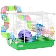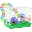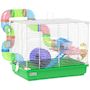 Cage à hamster 2 niveaux avec poignée - avec tunnel, biberon eau, roue, maisonnette, échelles - vert