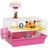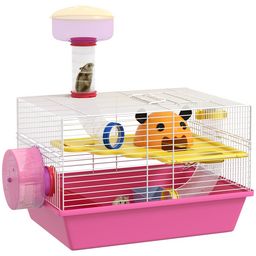 Cage à hamster rat rongeur - plateforme, biberon eau, roue, maisonnette, tubes - acier blanc PP rose