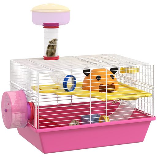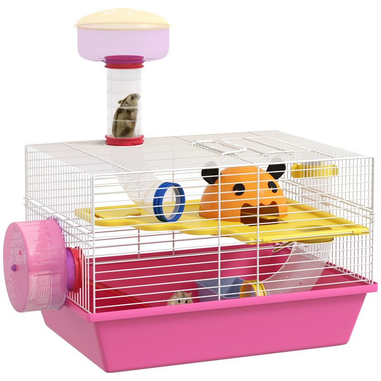 Cette superbe cage pour hamsters, souris ou autres petits rongeurs PawHut offrira un habitat et espace de jeu idéal pour votre ou vos petits animaux. Fabriqué en acier et PP, dotée de nombreux accessoires (1 plateforme, maisonnette, roue d'exercice, biberon d'eau, etc...), vos rongeurs pourront se d