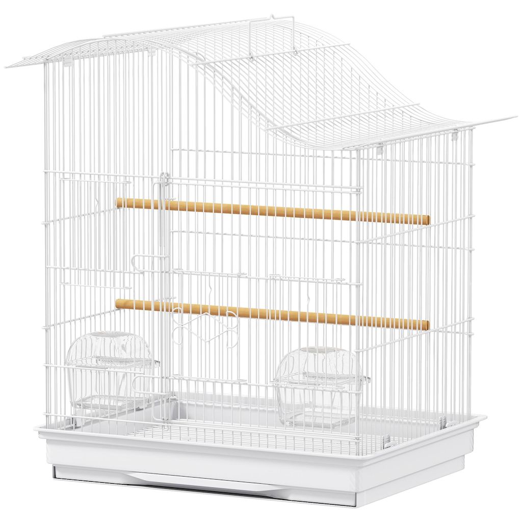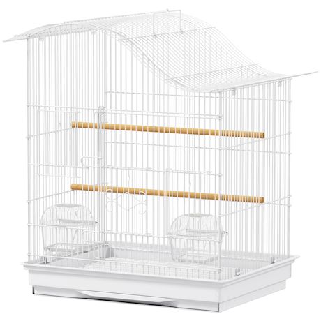 - Cette volière comprend deux perchoirs et deux mangeoires couvertes pour répondre aux besoins de votre oiseau