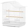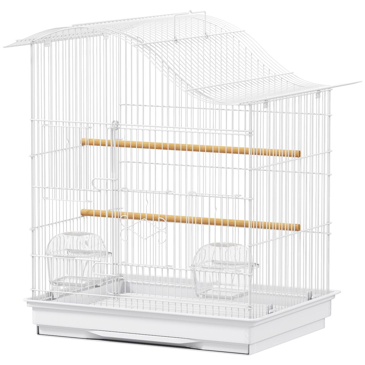 Cage à oiseau 4 portes 2 perchoirs 2 mangeoires plateau coulissant poignée blanc