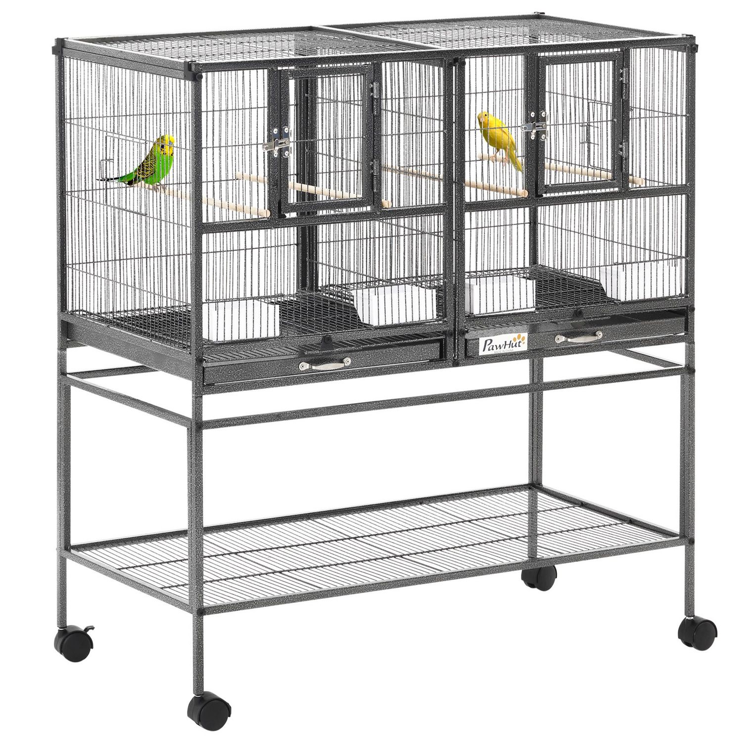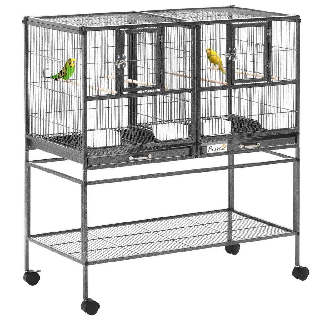 Garder votre animal actif, en sécurité et heureux avec ce kit de cage d'oiseaux PawHut qui favorise le bien-être et la longévité de vos amis à plumes. Notre cage offre beaucoup d'espace de vie et d'activité. Cette cage à oiseaux avec roues est dotée de 4 perchoirs en bois et 4 contenants de nourriture en plastique pour que vos oiseaux puissent en profiter. Les 2 plateaux métalliques coulissants sur le fond sont conçus pour attraper les graines d'oiseaux et coulissent pour faciliter le nettoyage..