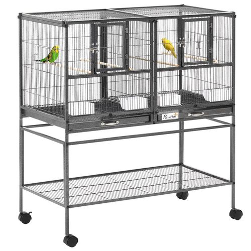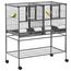Cage à oiseaux avec séparation mangeoire et perchoir 95L x 45l x 102H cm Noir et Gris