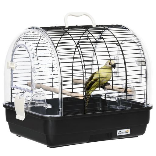 - Cage oiseaux rectangulaire portable en métal noir et plastique noir transparent mélant sobriété et élégance pour s'intégrer parfaitement à votre intérieur