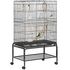 Cage à oiseaux sur roulettes - étagère, plateau déjection, 3 perchoirs, 4 mangeoirs, 2 portes, 8 trappes, accessoires - acier noir