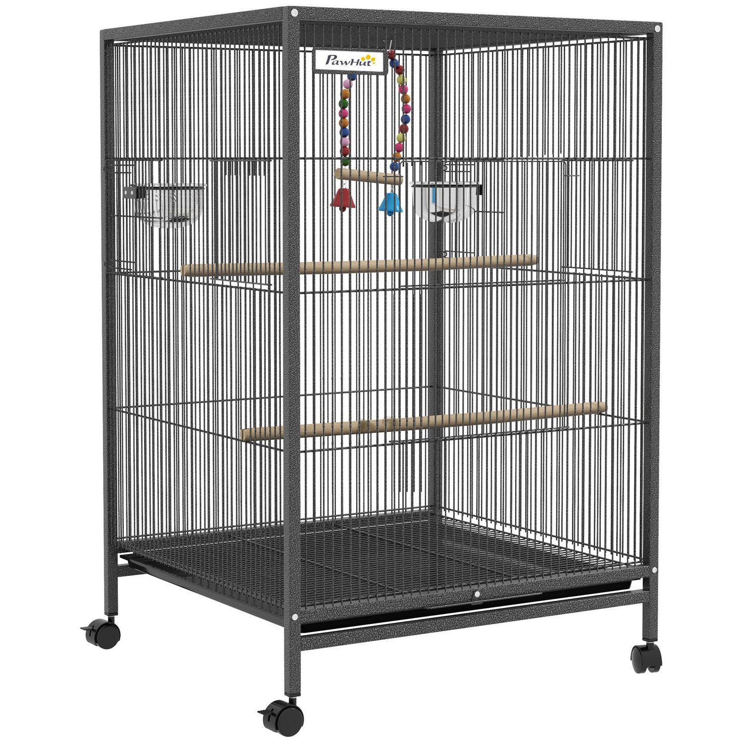 Cage à oiseaux sur roulettes - volière mobile - nombreux accessoires - dim. 48x46x74cm - acier époxy gris noir