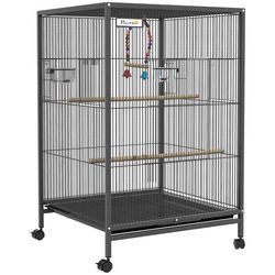 Transformez la vie de votre animal avec la cage à oiseaux PawHut, spacieuse avec perchoirs, jouets et balançoire. Facile à entretenir grâce à son plateau amovible et des compartiments pour nourriture et eau. Mobile avec quatre roues et stable avec deux freins, elle garantit sécurité et commodité. Un