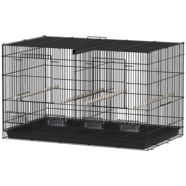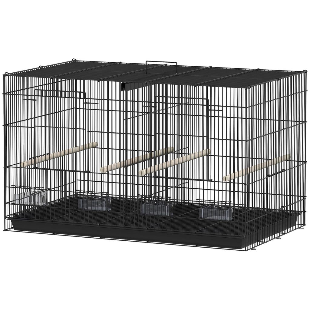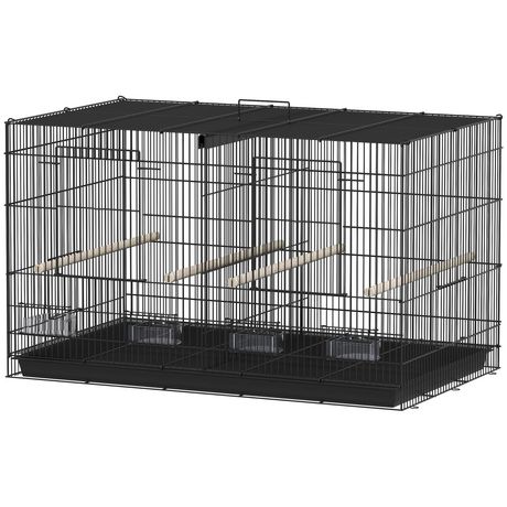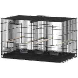 Cage à oiseaux volière acier avec séparateur - 4 perchoirs, mangeoires, portes, trappes, plateau déjection - noir