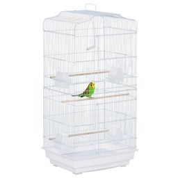 Cage à oiseaux volière avec mangeoires perchoirs plateau amovible 2 portes dim. 46,5L x 35,5l x 92H cm métal blanc